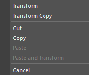 Cut, copy and paste operations are accessed through the Transform Tool right-click context menu: