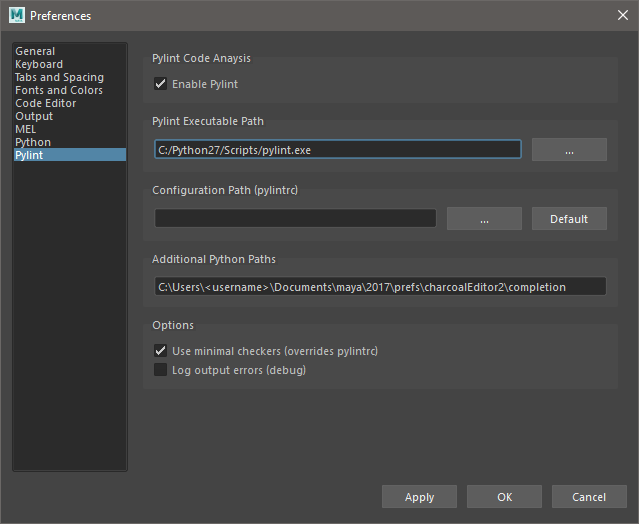 Pylint is a standalone application that can be downloaded or built from source code. The documentation below will provide one method for downloading the executable. Once the application has been copied to the host machine, the location of the pylint executable needs to set in Charcoal Editor 2's preferences.