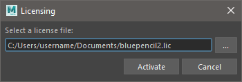 (e.g. C:/Users/<username>/Documents/maya/bluepencil2.lic)