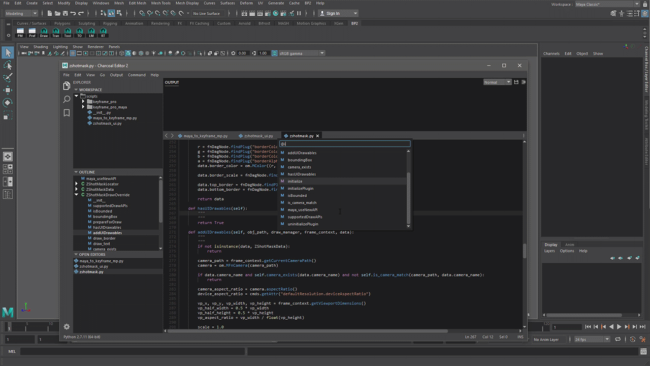 Charcoal Editor 2 is a plugin for Autodesk Maya designed to replace the aging script editor. Fully integrated into Maya using Qt and the Maya API, Charcoal Editor 2 brings many of the advanced features found in leading IDEs directly into Maya.
