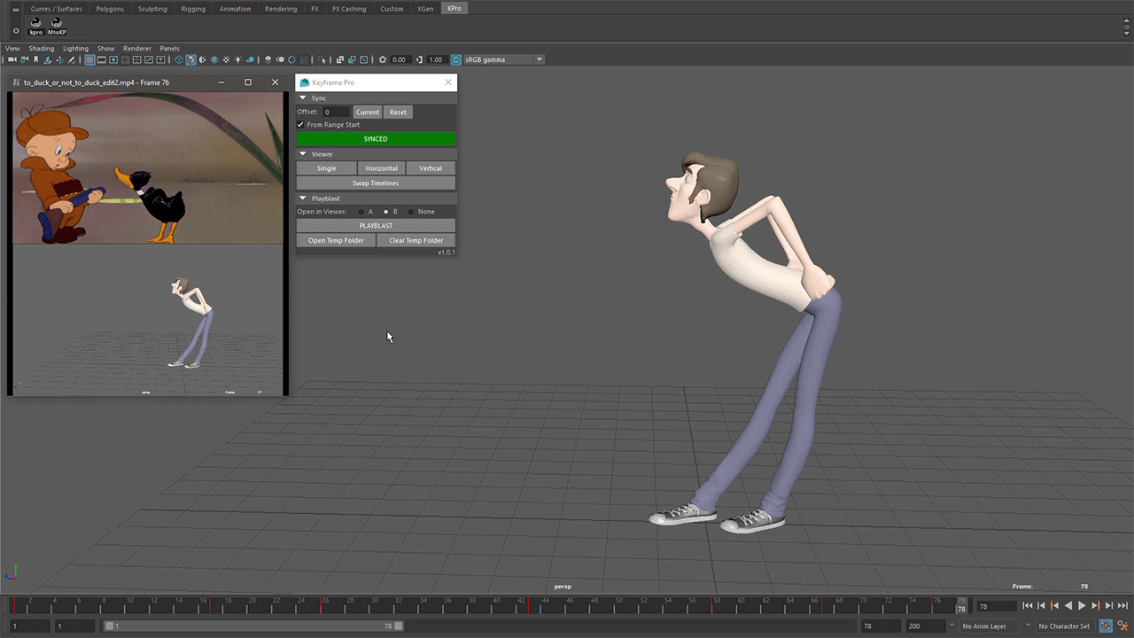 Maya to Keyframe Pro is a Python script for Maya that allows users to control Keyframe Pro through a compact UI inside of Maya. The script utilizes the Keyframe Pro Client API and provides timeline syncing, viewer controls and playblasting functionality.